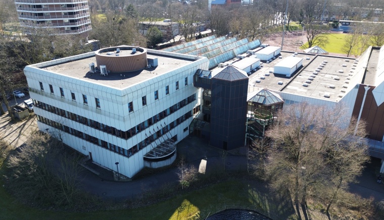 Ein Blick auf die Geschäftstelle des Fußballverbandes Niederrhein im Sportpark Wedau in Duisburg.