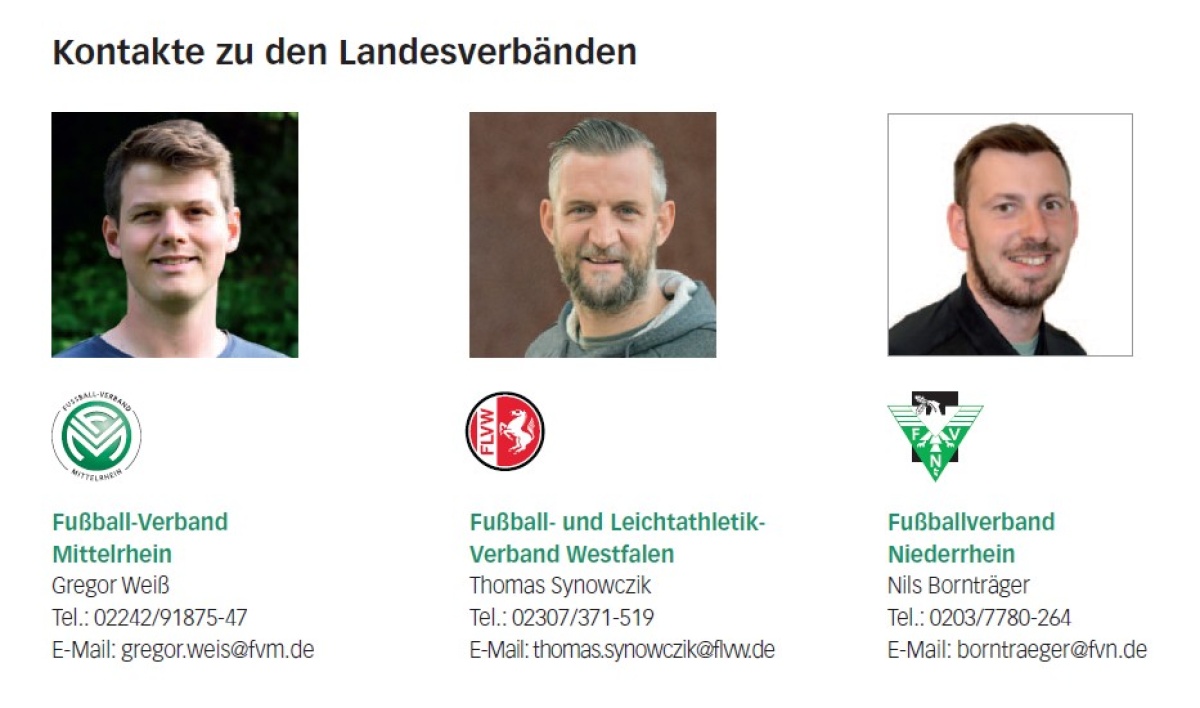 Sie benötigen aktive Unterstützung bei der Vorbereitung und Durchführung des Grundschulfestivals? Eine Mitarbeiterin oder Mitarbeiter eines Fußball-Landesverbandes kann Ihnen bei der Vorbereitung helfen. Möglicherweise organisieren DFB-Junior-Coaches den Tag gemeinsam mit Ihnen oder wir vermitteln Ihre Anliegen an den oder die Fußballvereine vor Ort, damit Sie kompetente Unterstützung bekommen können. Sprechen Sie die in Ihrer Region jeweils Verantwortlichen der Fußballverbände gerne an.
