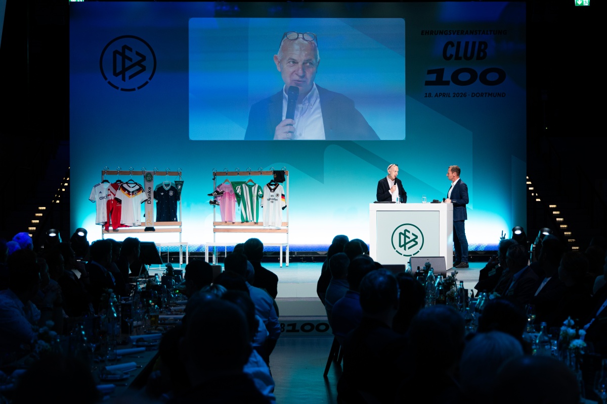 Der Amateurfußball in Deutschland lebt vom Ehrenamt - und genau dieses Engagement würdigte der Deutsche Fußball-Bund (DFB) auch in diesem Jahr wieder im Rahmen der Auszeichnung "Club 100". Die Ehrungsveranstaltung fand am Samstag, 18. April, im Deutschen Fußballmuseum in Dortmund statt. Daran nahmen neben DFB-Präsident Bernd Neuendorf und DFB-Vizepräsident Peter Frymuth auch Drittligaschiedsrichterin Davina Lutz und der frühere BVB-Keeper Roman Weidenfeller teil.
