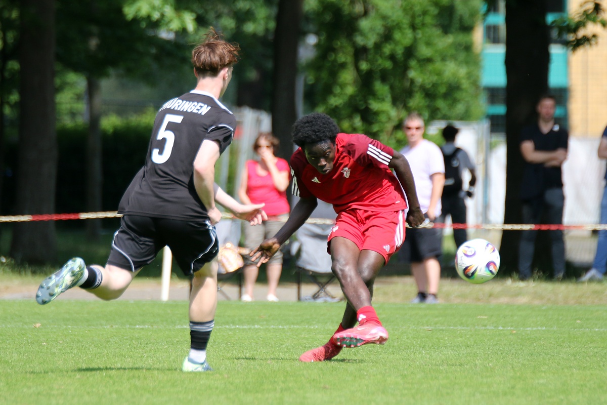 Nach einem torlosen Unentschieden im Auftaktmatch am Freitag gegen Schleswig-Holstein hatte der Gladbacher Peniel Poba am Samstag im Spiel gegen Südbaden für den ersten FVN-Treffer des Turniers gesorgt, kurz vor dem Abpfiff glichen die Südbadener aus. Den spielfreien Sonntag nutzten die Talente vom Niederrhein scheinbar, um nochmal so richtig Kraft zu tanken: In ihrer dritten Partie besiegte die FVN-Auswahl das Team aus Baden durch Tore von Peniel Poba, Noel Trostjanetzki, Israel Tetteh und Edin Biber deutlich 4:0, um am Finaltag gegen Thüringen noch einen draufzusetzen. Elias Oberschewen (2), Israel Tetteh, ein Thüringer Eigentor und Johannes Yakadio sorgten für den 5:0-Kantersieg, der auch den Trainer beeindruckte: "Unsere Mannschaft hat sich über das ganze Turnier gesteigert und vor allem in den beiden letzten Spielen tolle Leistungen gezeigt”, lobte Ludwig Lippold.