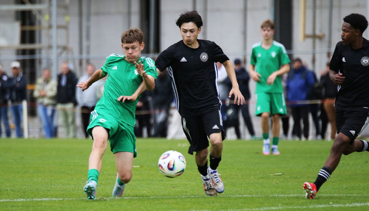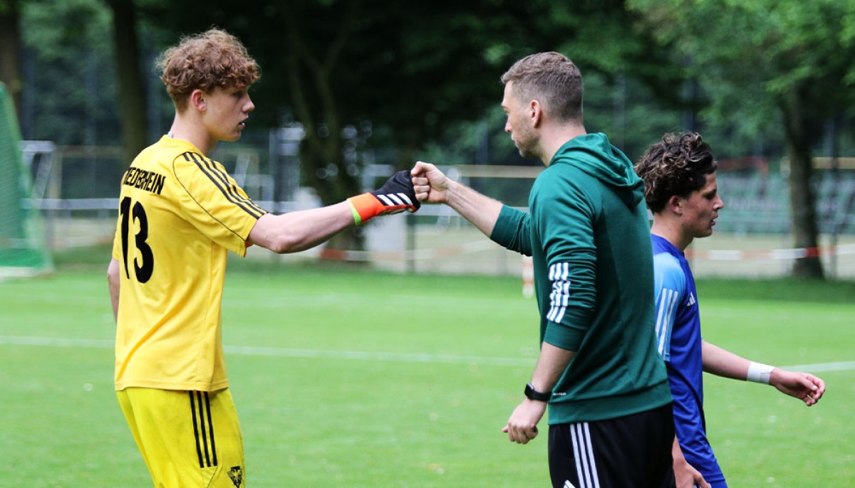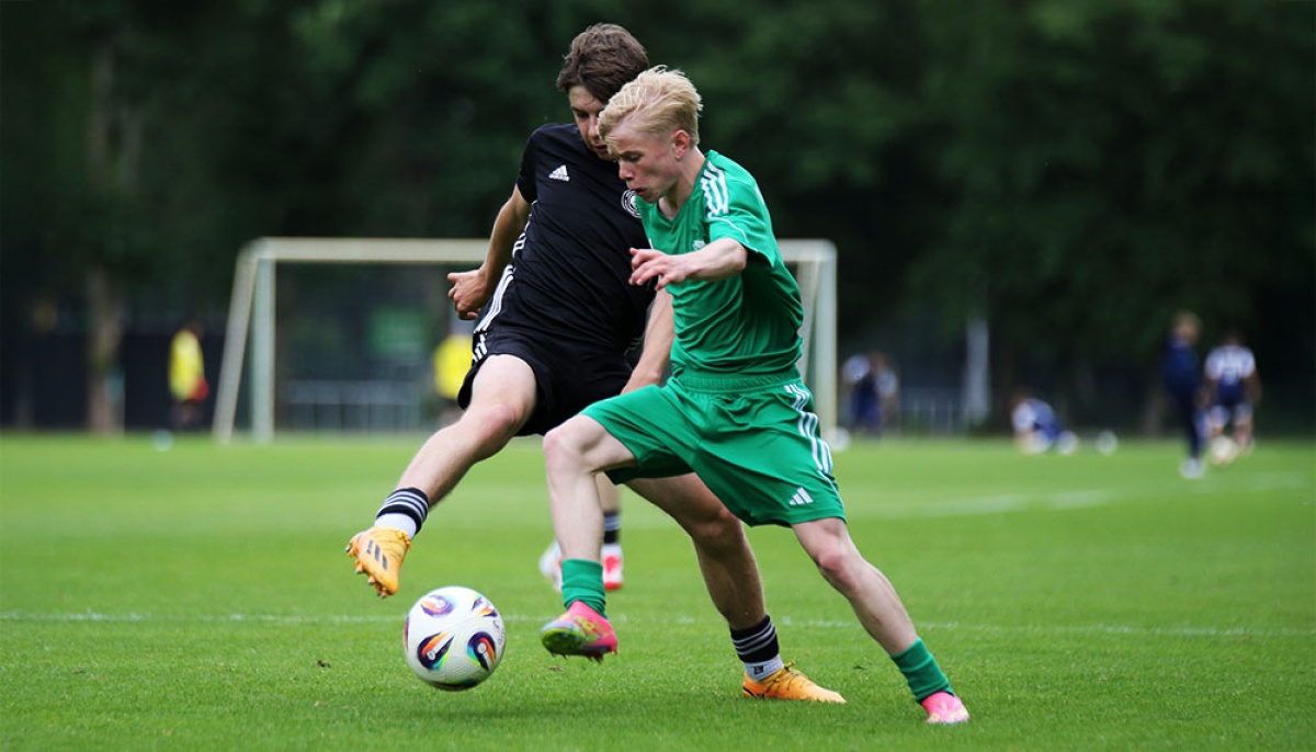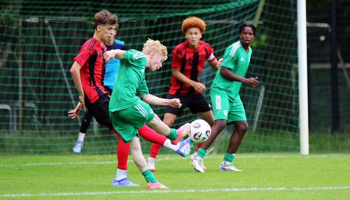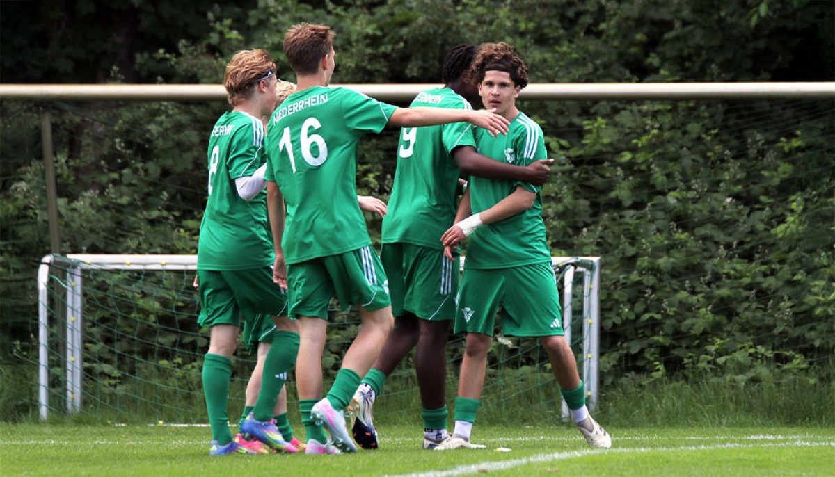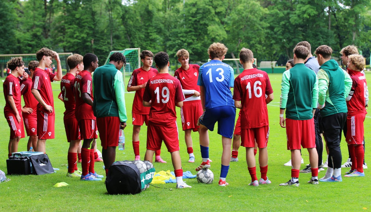 Mit zwei Siegen in Folge beendeten die U 15-Junioren des Fußballverbandes Niederrhein (FVN) das DFB-Sichtungsturnier um den Länderpokal in der Sportschule Wedau. Zum Abschluss besiegte das von Verbandssportlehrer Robin Krüger, den Co-Trainern Moritz Stangier und Jonathan Haase sowie Physio Hannah Roegels betreute Team die bayerische Zweitvertretung 4:0. Tags zuvor hatten die FVN-Talente ein 3:2 gegen die Sachsen-Auswahl eingefahren, nachdem sie in der ersten Turnierhälfte zwei knappe 0:1-Niederlagen gegen Mecklenburg-Vorpommern und das Team aus dem Rheinland einstecken mussten. Sechs Punkte bei einem 7:4-Torekonto bedeuten Platz elf im Abschlussklassement.