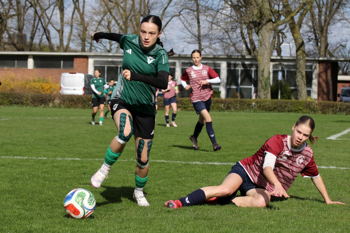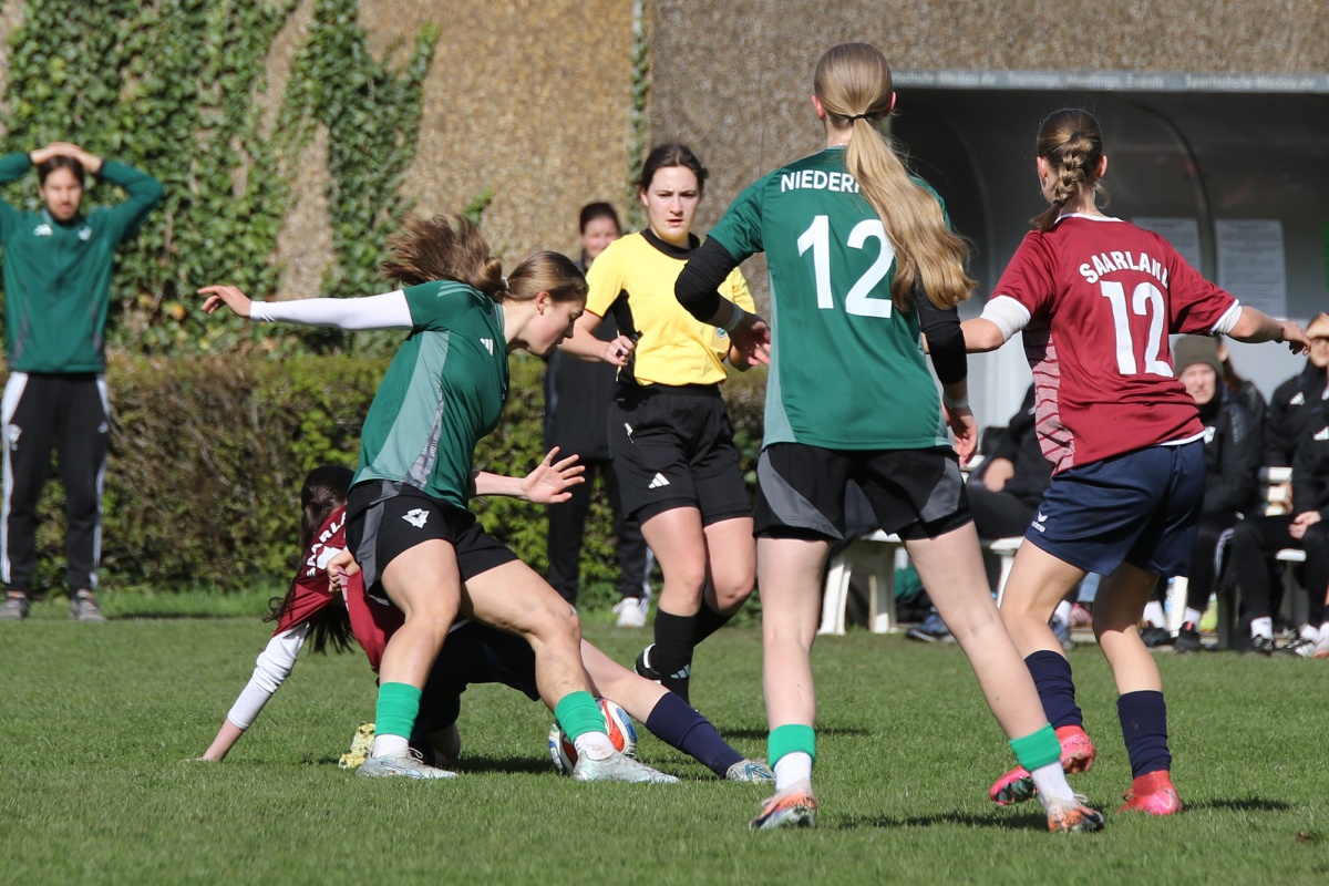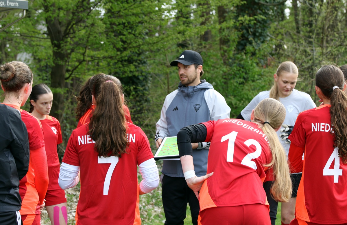 Schon zum Auftakt hatte sich die Niederrhein-Auswahl durch ein 3:0 über Sachsen-Anhalt durch Tore von Charlotte Rohs, Emilia Watermeier und Ceylin Gül in eine gute Ausgangsposition gebracht. Es folgten zwei torlose Unentschieden gegen den späteren Turniersieger aus Württemberg und das Team aus dem Rheinland. „Das Unentschieden gegen Württemberg war ein gerechtes Ergebnis in einer ausgeglichen guten Partie. Gegen die Rheinland-Auswahl wollte uns trotz aller Überlegenheit einfach kein Tor gelingen”, erinnert Trainer Ludwig Lippold daran, dass „wir mit einem verdienten Sieg in diesem Spiel gute Chancen auf eine Medaille gehabt hätten, was unserer Leistung auch gerecht geworden wäre”. Umso treffsicherer präsentierten sich die Talente vom Niederrhein am Schlusstag gegen die Saarland-Auswahl: Beim 5:0 eröffnete Charlotte Rohs den Torreigen. Ein Doppelpack von Luisa Muthmann sowie Treffer von Nala Stein und Elifnaz Vurucu machten den Kantersieg perfekt.