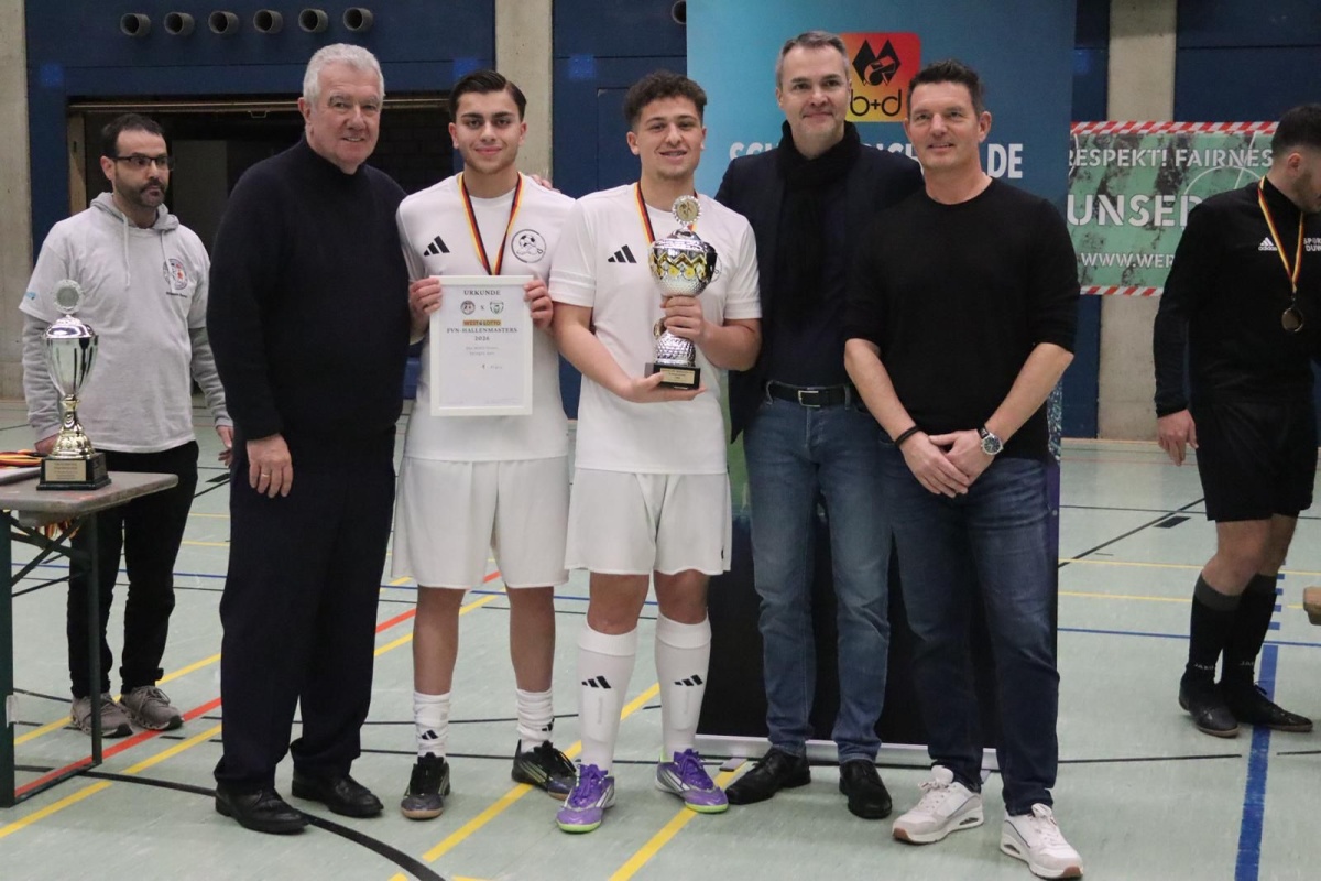 Die Ehrung der siegreichen Mannschaft nahmen FVN-Präsident Peter Frymuth und Boris Guzijan, der Vorsitzende des Verbandsschiedsrichterausschusses, vor und überreichten den begehrten Gerd-Hennig-Wanderpokal.