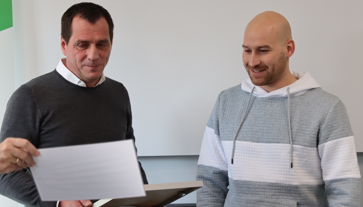 Von FVN-Präsident Peter Frymuth und Präsidiumsmitglied Peter Koch bekam Philipp Buckermann am Samstag, 24. Januar, in der Sportschule Wedau des FVN eine Urkunde sowie einen Gutschein für den Besuch eines DFB-Länderspiels überreicht. Sein Verein darf sich außerdem über zehn Bälle und vier Mini-Tore freuen.