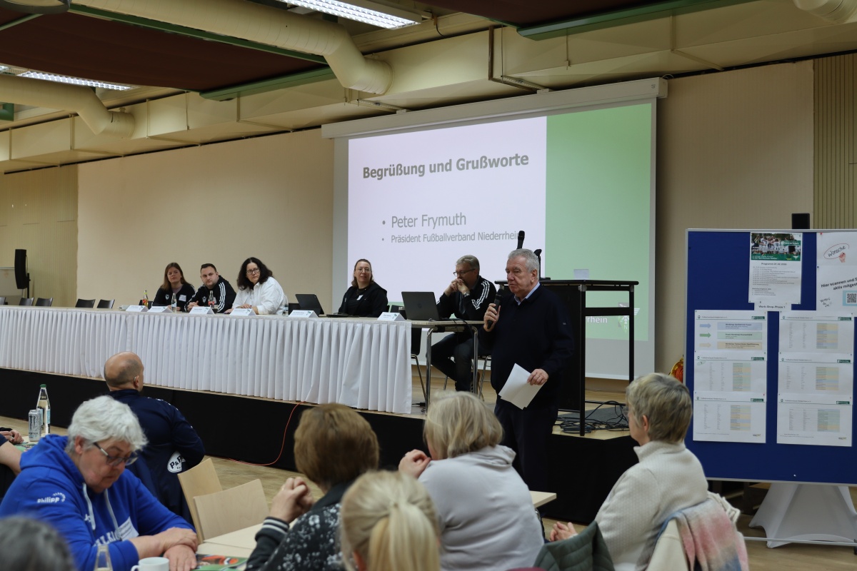 Ann-Kristin Gröne aus der FVN-Kommission Mädchenfußball, Marianne Finke-Holtz, Vorsitzende des WDFV-Frauenfußballausschusses, sowie FVN-Präsident Peter Frymuth begrüßten die zahlreichen Gäste.